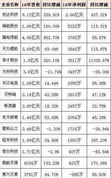 其中,在锂电池生产材料领域,创新层的“老成员”有天劲股份、金锂科技、科列技术、联赢激光、天丰电源等。本次晋级创新层成员包括:纽米科技、安达科技、第六元素、索尔科技、东方碳素、瑞能股份、新凌嘉、富电绿能、星和众工、丰江电池、方林科技、鼎能开源、天力锂能、奇才股份、青木高新、贝特瑞等。