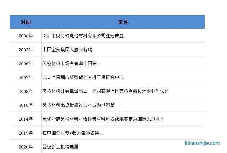 图4:贝特瑞发展历史重要事件资料来源:公司官网
