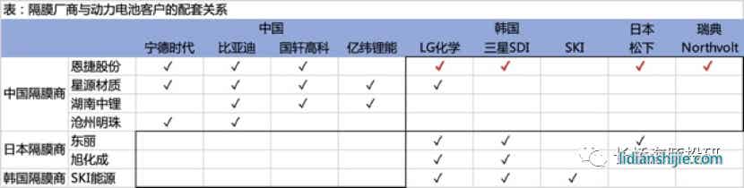 1、行业集中度最高,国内CR3约80%,CR5则超90%,其中恩捷股份以45%左右的市占率占第一的宝座,客户方面则不仅绑定了国内的宁德时代、比亚迪、国轩高科,还绑定了LG化学(为期5年的湿法隔膜订单)、松下、三星等海外动力电池龙头;