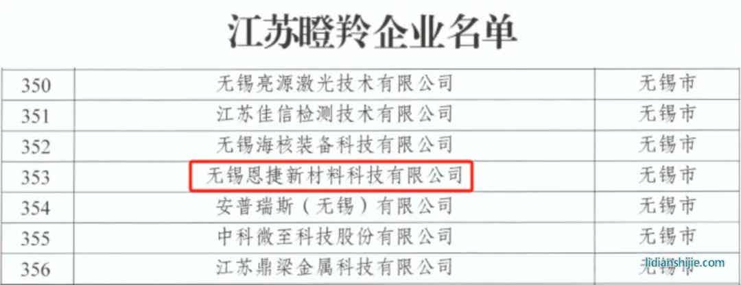 近日,恩捷股份旗下无锡恩捷凭借其在技术创新、市场开拓以及行业影响力等方面的表现,入选“2024年江苏瞪羚企业”。