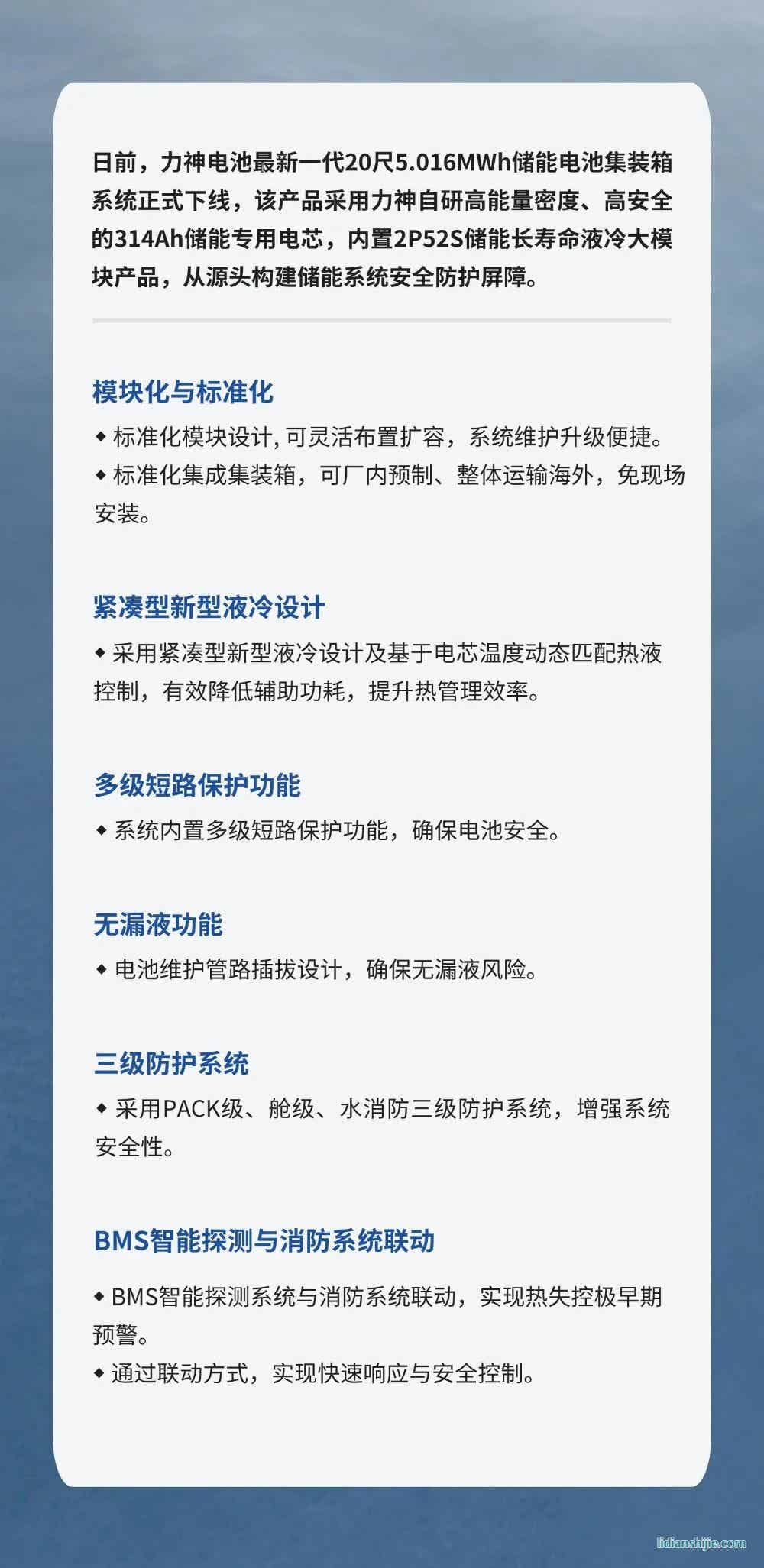 力神电池海外5.016MWh储能电池集装箱系统正式下线 2025-01-23 力神4710 核心提示:力神电池海外5.016MWh储能电池集装箱系统正式下线力神电池海外5.016MWh储能电池集装箱系统正式下线 点赞 0举报收藏 0打赏 0评论 0分享 58 更多>同类锂电资讯 • 固态电池,半固态电池,锂电池区别 • 【干货】锂电池产业链全景梳理及区域热力地图 • 欣旺达拟在泰国投建绿色能源锂电池工厂 • 在全球普遍担心锂电池起火的背景下,REPOWERTEK • 产能90GWh!大众旗下最大电池工厂在加拿大开工 • 万马新能源内蒙古500MW/2GWh电网侧储能项目开工 • EAS磷酸铁锂电池提供更多动力 • 抢锂关键期到了?锂电池企业纷纷下注入股业绩飘 • 锂电池ETF(159840)开盘跌1.15%,重仓股宁德时 • 鹤壁市设立12个免费锂电池健康评估网点和7个报