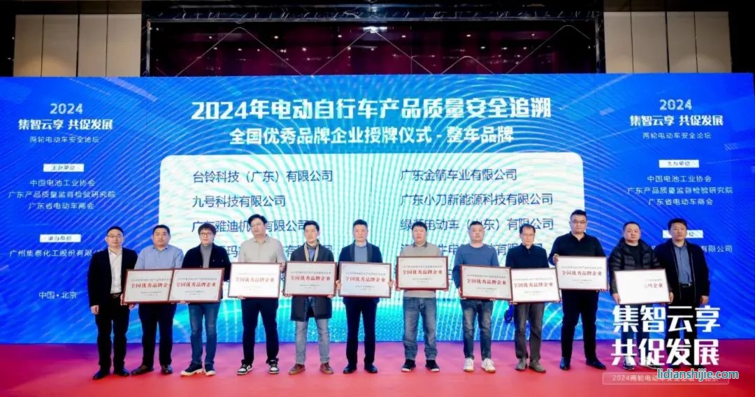 会上,电动自行车行业追溯服务平台正式发布。中国物品编码中心李健华副主任、广东省电动车商会蓝世有执行会长、广东质检院黄镇泽部长、中国质量认证中心冯真得、北京中轻联韩潇部长、中汽认证赵红利主管共同上台,按下启动键,电动自行车行业追溯服务平台正式发布。并对在平台试运行期间表现突出的全国优秀品牌企业授牌表彰。