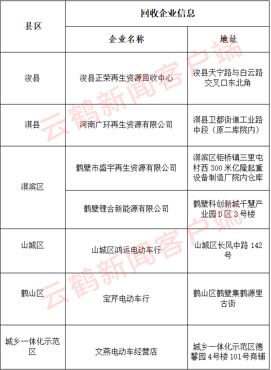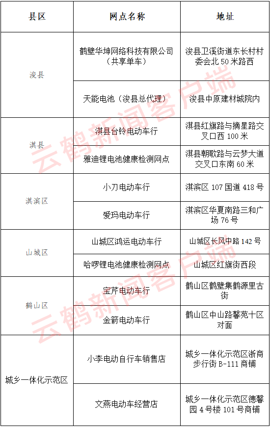 鹤壁市设立12个免费锂电池健康评估网点和7个报废回收网点