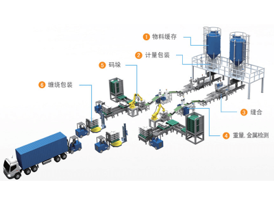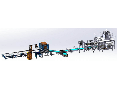 该系统是自动上袋、自动称重、自动扶包、自动输送、自动导袋折边缝包输送码垛。适用包装各类颗粒、粉料等及其类似物料的自动定量包装和连续自动定量计量。