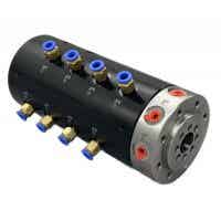 M型多通道旋转接头在固定连接点与旋转设备(如滚筒、分度台、离合器或主轴)之间提供了多重密封。采用多个独立的通道,可以让同种或不同种流体从单独的管路分配到单独或相同的管路。这些通道将流体传输到该旋转设备,而不会相互混合。适用于多通道旋转接头的常见动力和液体传输介质包括液压油、切削液、空气或惰性气体。其它介质还包括水、导热油和冷却液。当电力、信号或数据传输与流体传输结合使用时,M型液压旋转接头包括一个通孔以容纳滑环或直接与滑环集成在一起。
