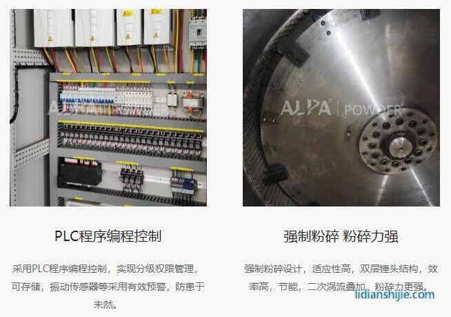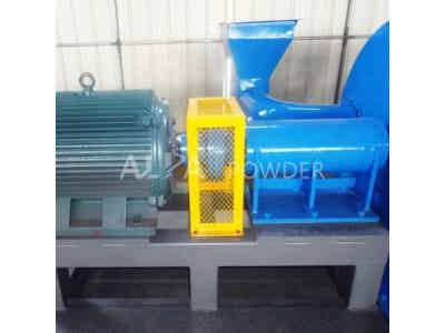物料由加料系统均匀的送入粉碎室,受到高速旋转的粉碎盘的强烈冲击,同时受到离心力的作用,与粉碎齿圈发生碰撞,受到剪切、摩擦、碰撞等多种综合力的作用,使物料粉碎,被粉碎的物料随气流运动到分级区,通过变频调节的分级轮,对粗细物料进行分离,符合细度要求的产品随气流进入旋风收集器和除尘器收集,粗细料返回分级区二级粉碎。